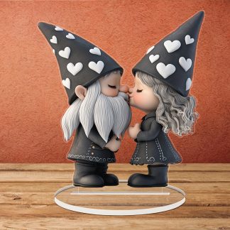 2D Flat 1pc, Romantic Gnome Couple Kissing Acrylic Plaque with Base – Home Decor Plaque Desktop Decoration, 2D Flat Design, Valentine’s Day Gift for Her/Him Wife/Husband, Christmas, Wedding, Anniversary, Birthday, New Year, Seasonal Decoration