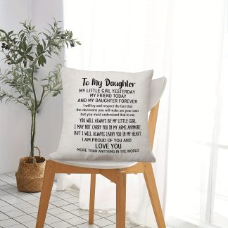 1 Heartfelt Daughter Pillow Cover – Unique Birthday Gift for Mom or Dad, 18×18 Inch, Linen Decor, Zipper, Machine Washable, No Insert Required