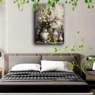 1 Piece Vintage Blue and White Floral Canvas Art, Wooden Frame Wall Decor, Elegant Canvas Painting, Display Art Vintage Jar, Perfect for Living Room, Bedroom, Office or Home Decor