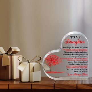 2D “To My Daughter” Heart Shaped Acrylic Table Decoration My Daughter Treasures, Forever My Child Girl, Timeless Gift for Birthday Graduation Wedding Christmas, Deeply Thoughtful Home Decoration Gift for Daughter