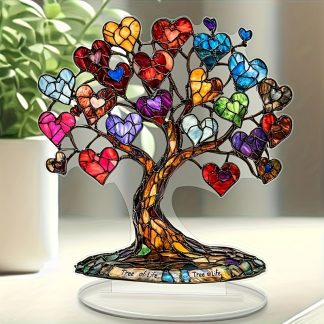 2D Flat – 1pc, Vivid Color Love Tree Acrylic Table Sign – Perfect Valentine’s Day Gift for Women Men Wife Husband, Birthday, Christmas, Mother’s Day and Father’s Day Gift, Ideal Gift for Mom and Dad – Home and Office Desktop Decoration, Including Base