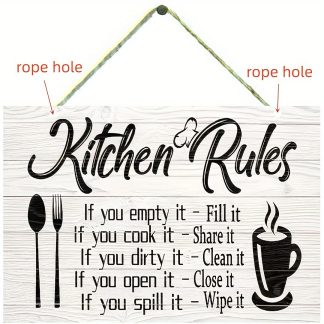 2pcs “Kitchen Rules” “Wooden Wall Signs – Lightweight and Easy to Hang – Great for Kitchen and Home Decor”