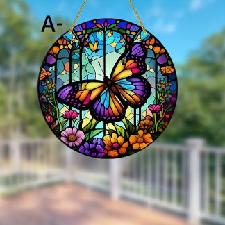 Acrylic round butterfly window glass ornaments, color panel home window decoration pendants, suitable for indoor and outdoor use