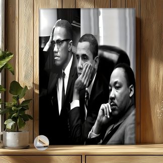A wood framed painting of President Barack Obama, suitable for use as decorative art in living rooms, bedrooms and bathrooms.