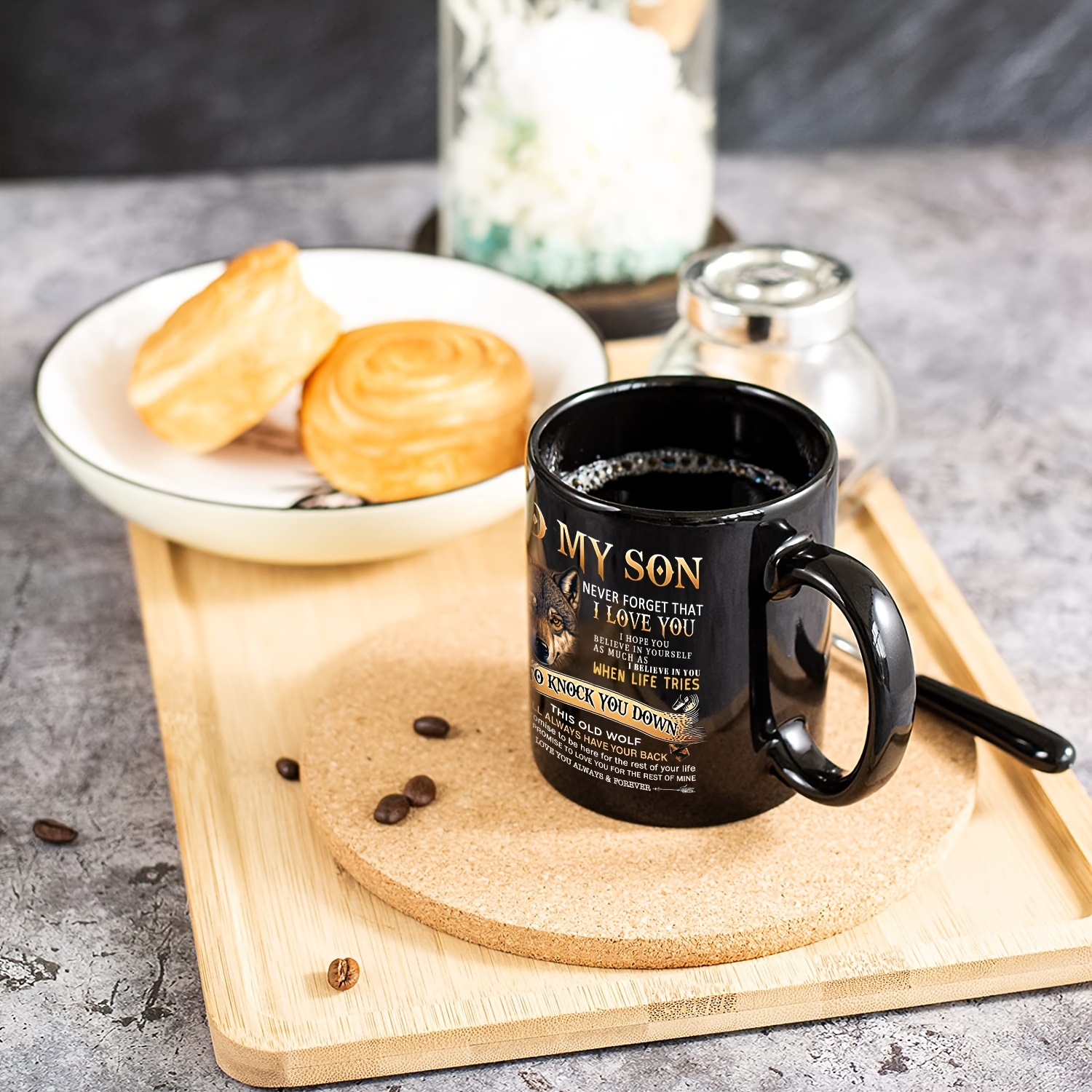 Four Seasons Black 11 oz Mug, Carefully designed to create an inspiring gift, Leading Wolf, for friends, family, father, son, holidays, birthday gifts, Christmas gifts